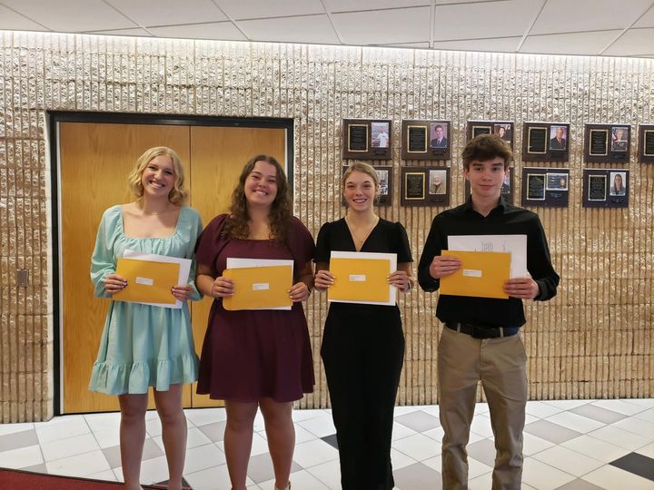 2024 Class of 75 Scholarship recipients L-R Alexandria Miller, Olivia Rowles, Peyton Norris and Elijah Fox. All 4 recipients are relatives of Class of 75 alumni.