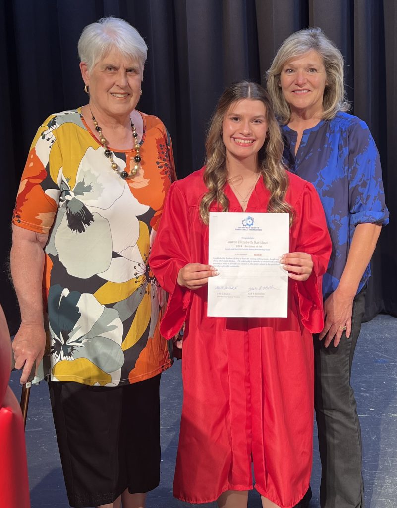 Barbara Bishop and Phyllis Byerly pictured with Emily Kurtz, 2025 recipient of the Joseph and Mary McFarland Bishop Memorial Scholarship.