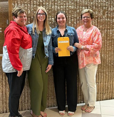 2024 T-Harp Scholarship Recipients – L-R Bobbi and John Harpster, recipients Khendyl Sharrer and Haylee Wood – Harpster family members Macy Neideigh and Johnny Harpster.