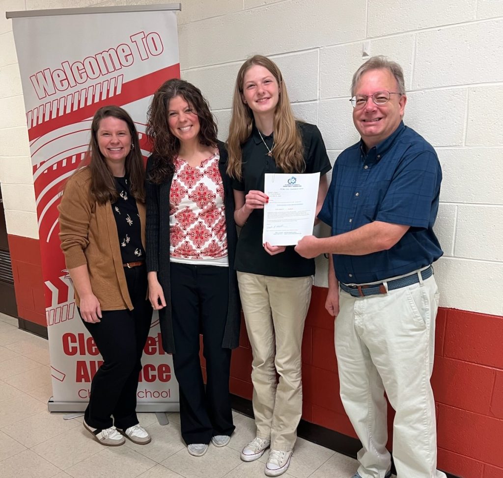 The 2025 Recipient of the Evelyn Czarnecki-Verbeke Memorial Scholarship is Hannah Finney – 2025 Graduate of the Clearfield Alliance Christian School. Pictured L-R Christi Manno – School Administrator, Joy Finney – mother, Hannah Finney and Mark McCracken – Executive Director CCCF