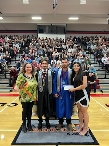 Danae Cantolina and Sierra Sones present the 2025 Be the Kindness Award in Memory of Westin Cantolina to Keegan Fester and Derek English. At the time of his death, Westin Cantolina was accepted to the CCCTC Welding Program and would have been graduating with Keegan and Derek the evening this photo was taken at the CCCTC Graduation Ceremony on May 22, 2025.
